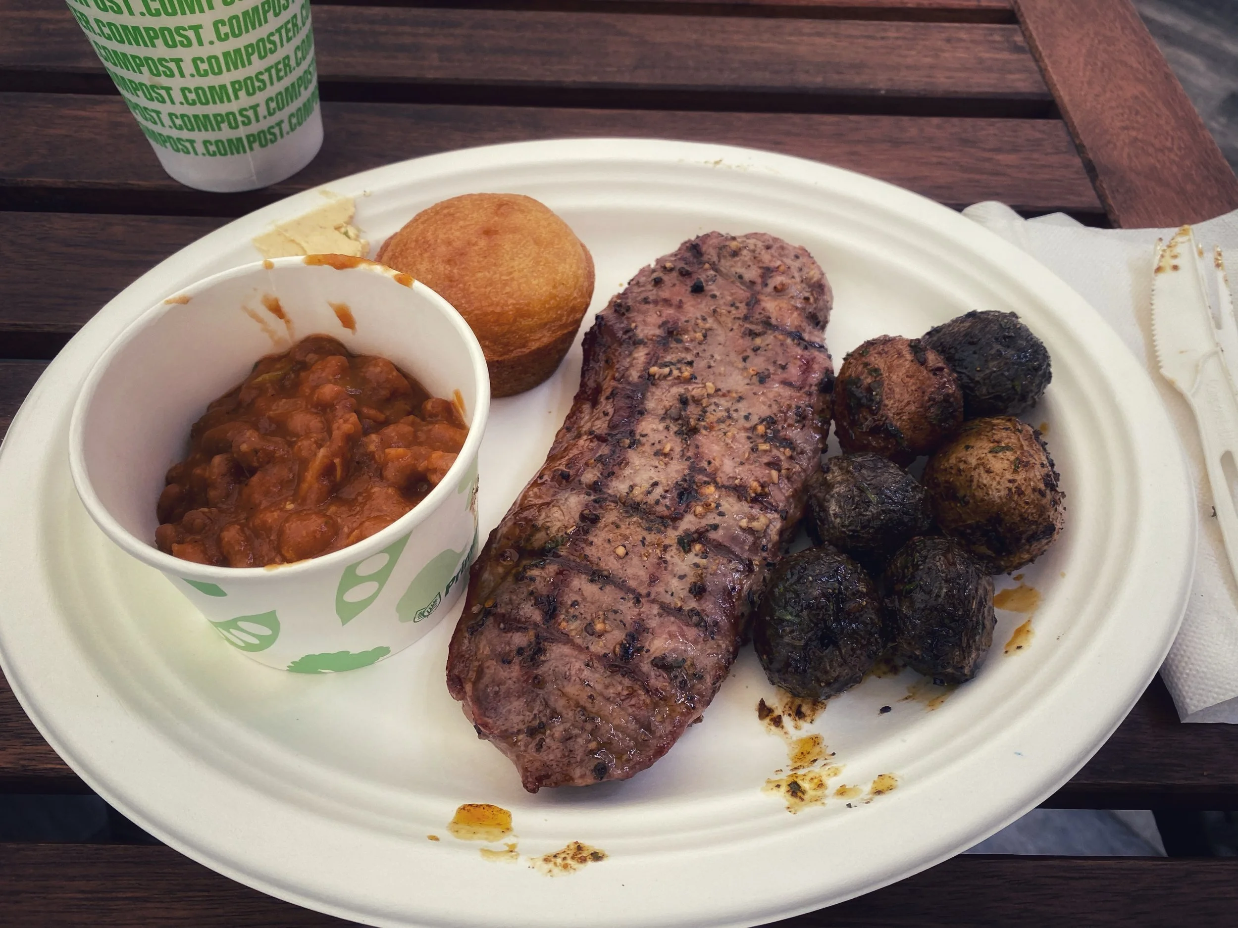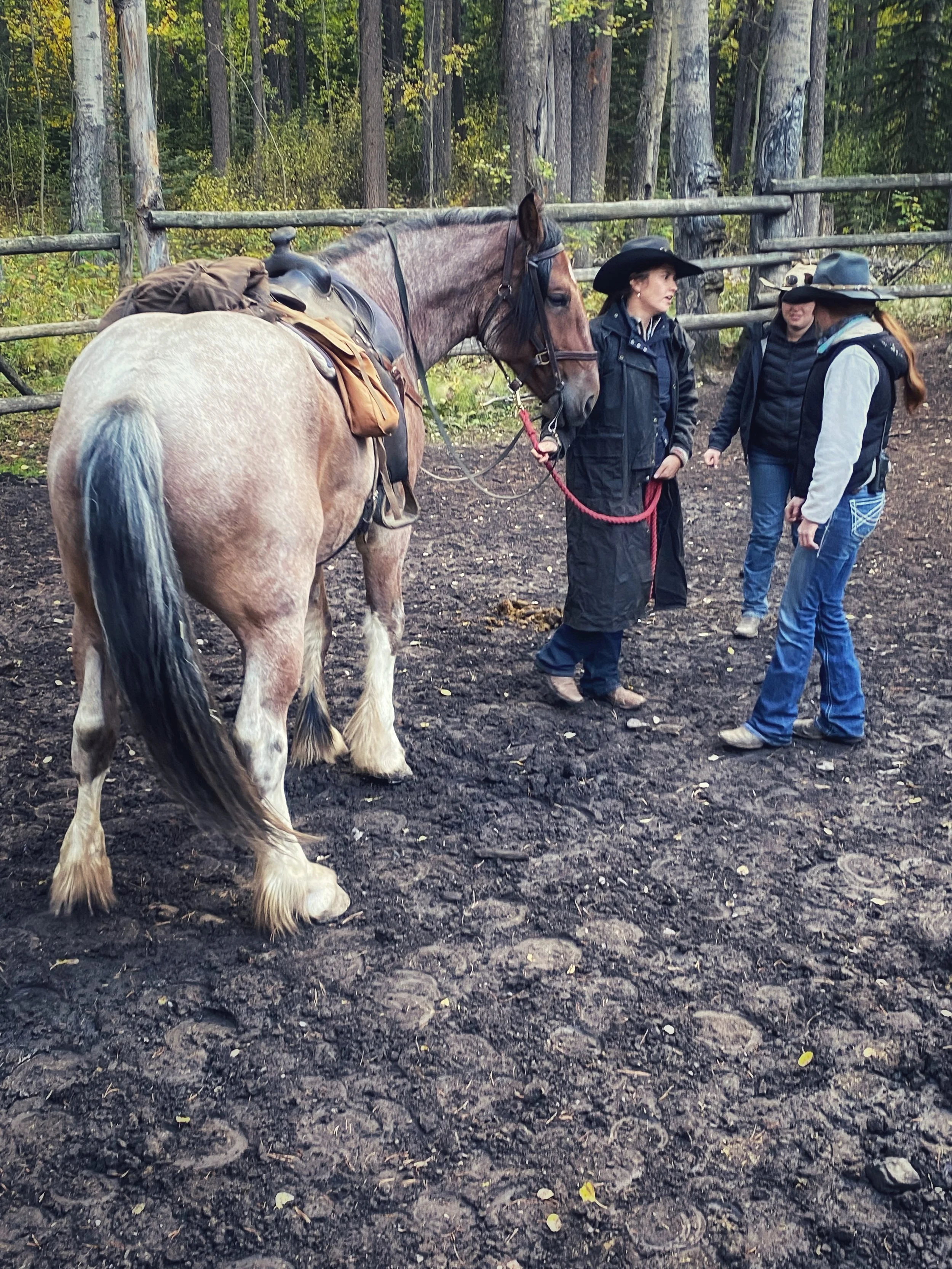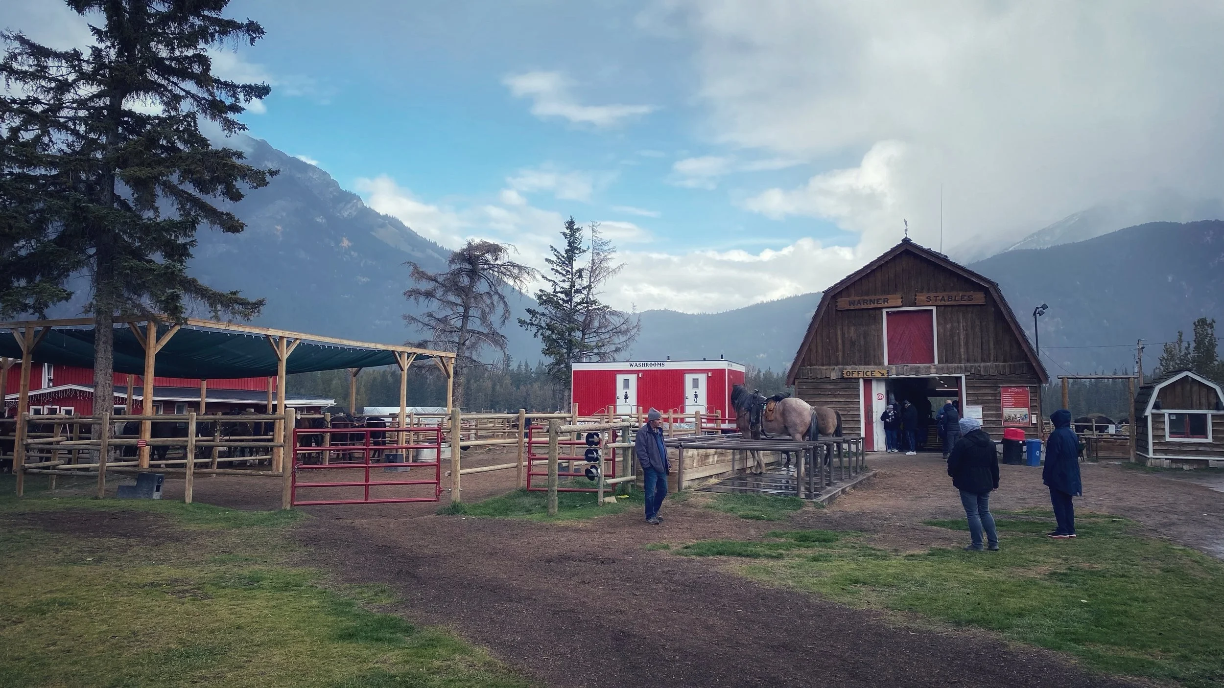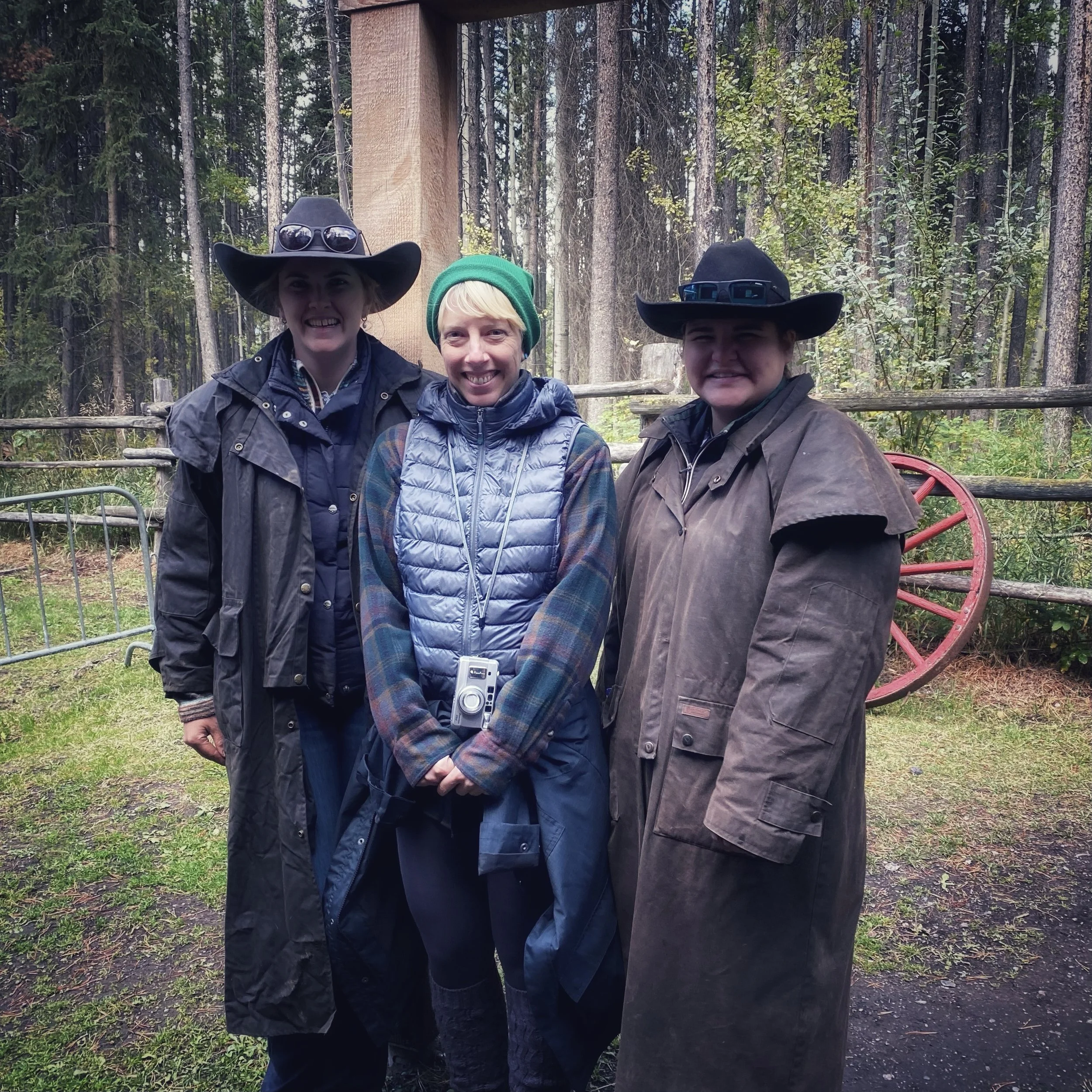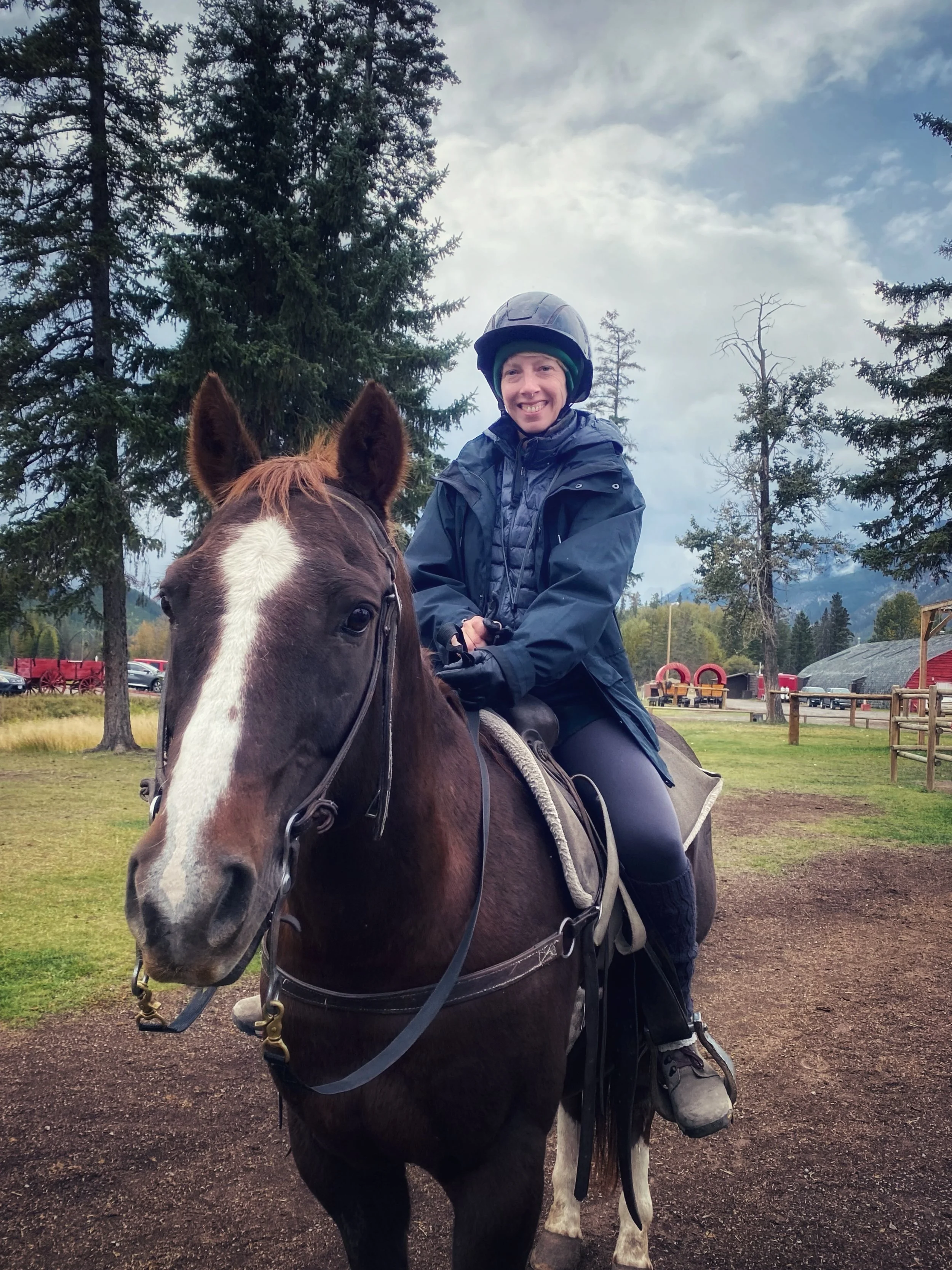 After lunch is when we split. Zeb dropped me off at Banff Trail Rides and I did a horseback trail ride with a cowboy style cookout! It was really fun! My horse was named Latte and had a bit of an attitude. On the way out we were second horse and he just wanted to moosy along! Then he we trot to catch up, lol. We climbed and defended hills, saw amazing scenery, and heard interesting stories about how Banff came into being. Once we arrive at Three Mile Cabin I attempted to lasso, but without success!! The meal was amazing!! The steak was DELICIOUS!! So was the garlic butter & cornbread muffins. Topped with hot apple cider! Yummmm….