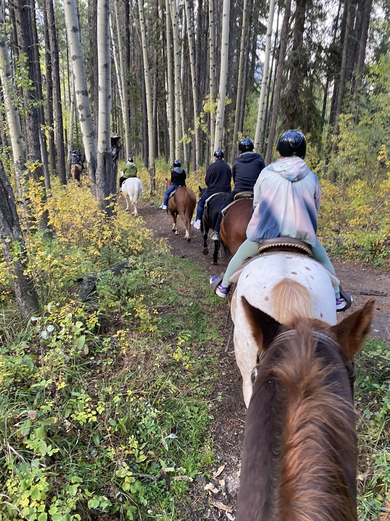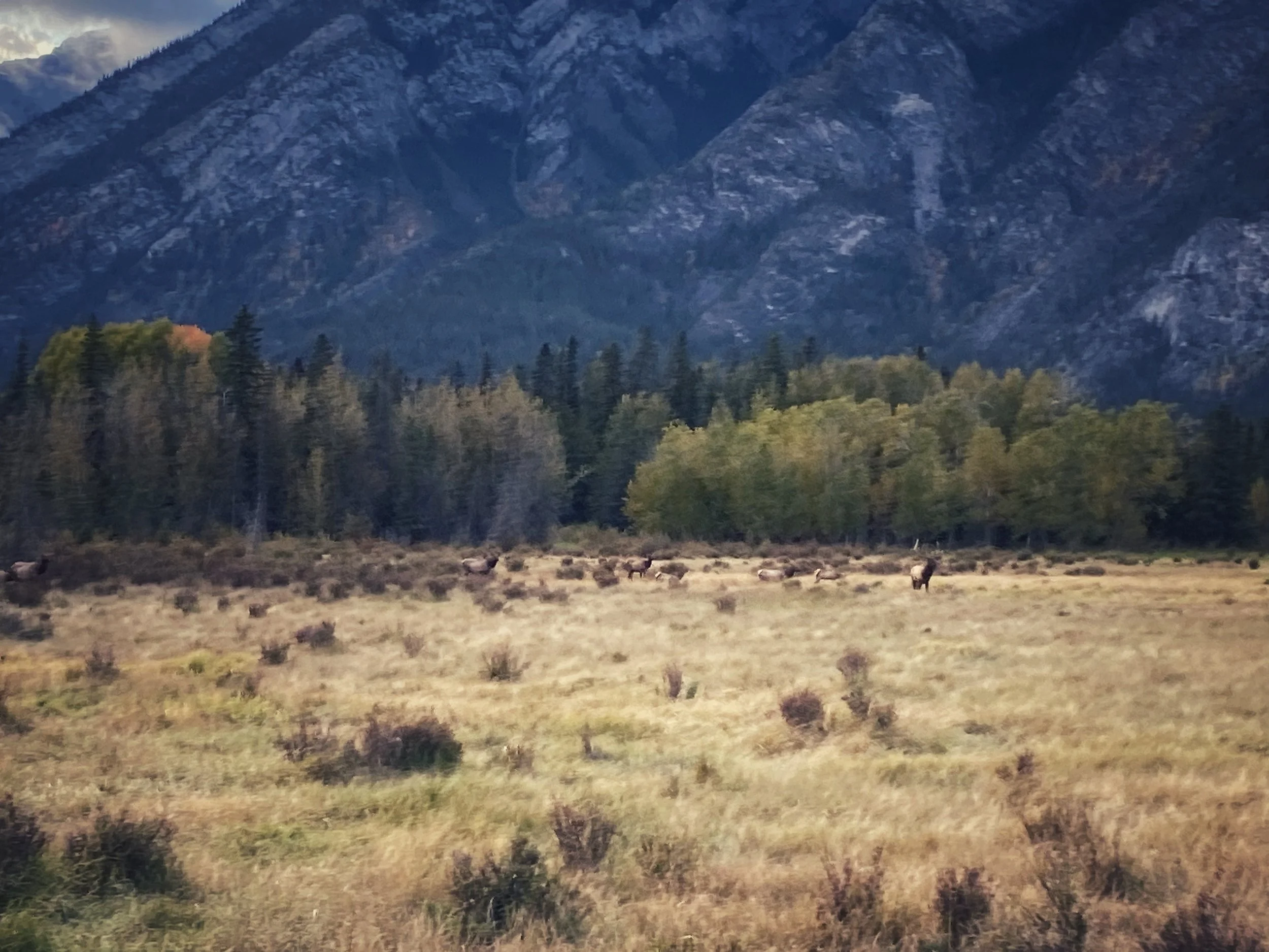 Then on the way back we were relocated to the back, only followed up by the other trail guide. Latte wasn’t lovin that! Latte kept trying to make his way up past Beetlejuice, who was in front of us. Latte would just shake his head when I pulled the reins. (He’s a western style trained horse) On the way back we also saw a heard of elk! Huge antlers!!! I ran out of film and attempted a couple phone photos.